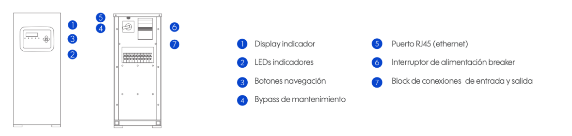 - Display con indicador para ajuste de voltaje en sitio y operación del sistema